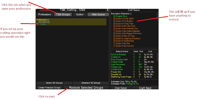 Glyph's right now are seem to be selling quite well, but obviously I need to restock and to do this I'll be using TSM Crafting which works really well when trying to sell Glyph's. I have added some pictures below.